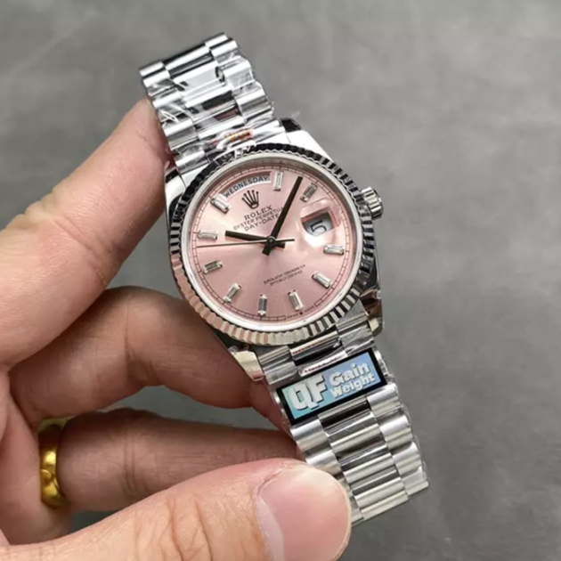 QF공장 롤렉스 데이데이트 36 핑크 바게트 다이아 다이얼 화이트 골드 금통 128236