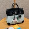 올수공 에르메스 버킨 25 noir 스위프트 가죽 & 캔버스 실버 하드웨어