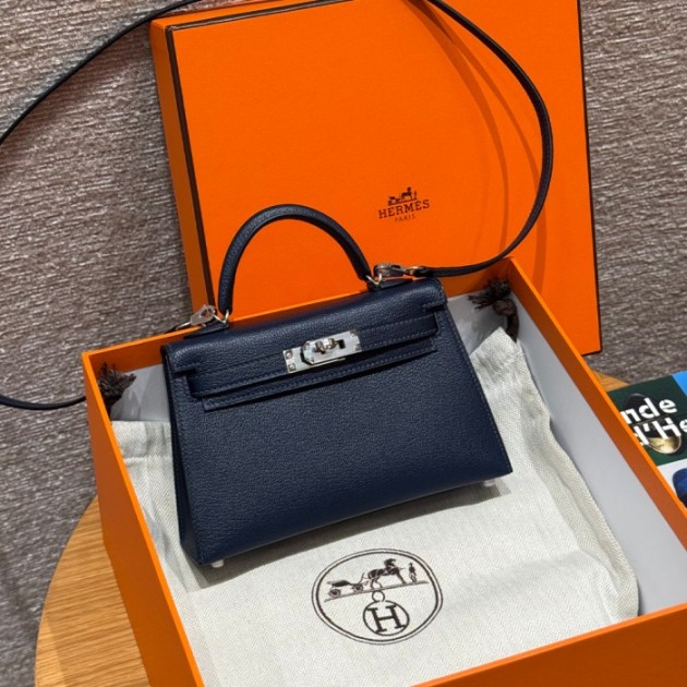 올수공 에르메스 미니 켈리 Blue saphir 쉐브르 가죽 실버 하드웨어