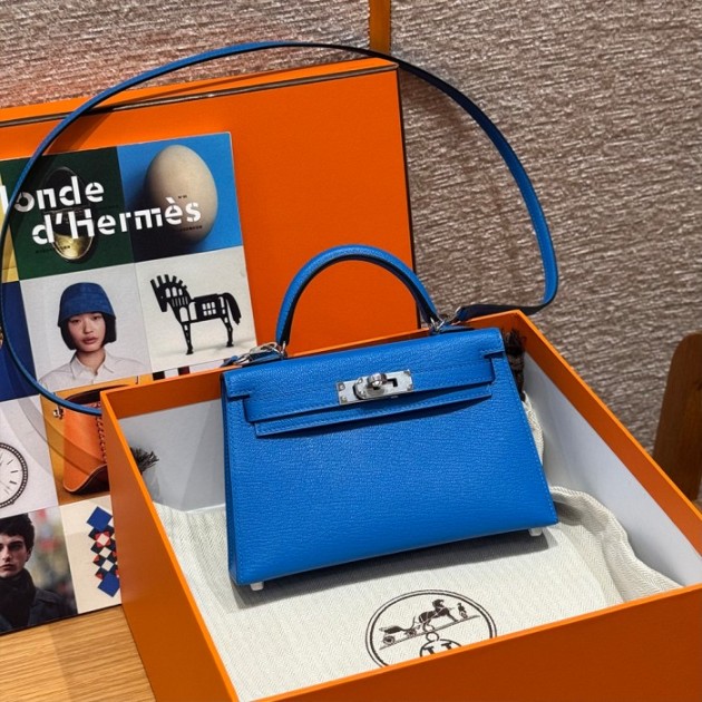 올수공 에르메스 미니 켈리 Blue Hydra 쉐브르 가죽 실버 하드웨어
