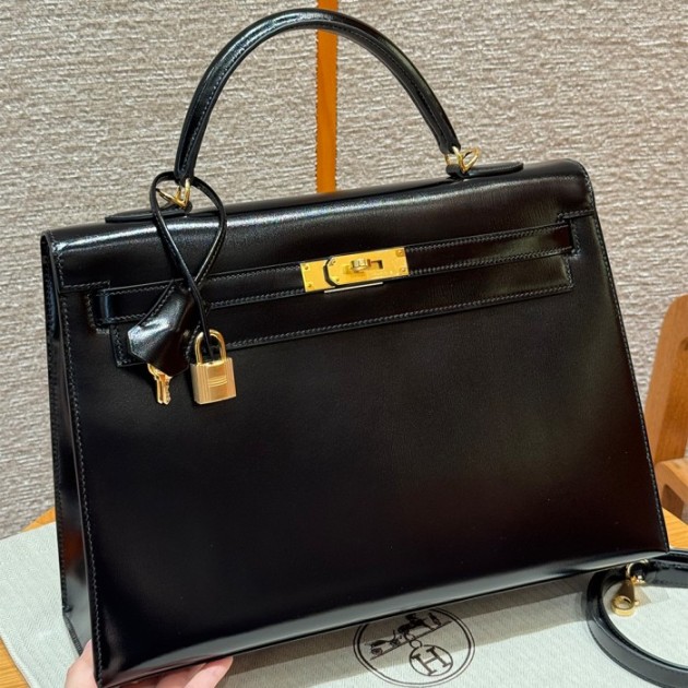 올수공 에르메스 켈리 35 noir 박스 가죽 골드 하드웨어