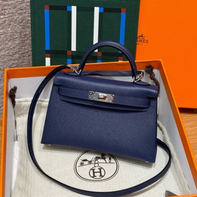 올수공 에르메스 미니 켈리 73/Blue saphir 엡송 가죽 실버 하드웨어