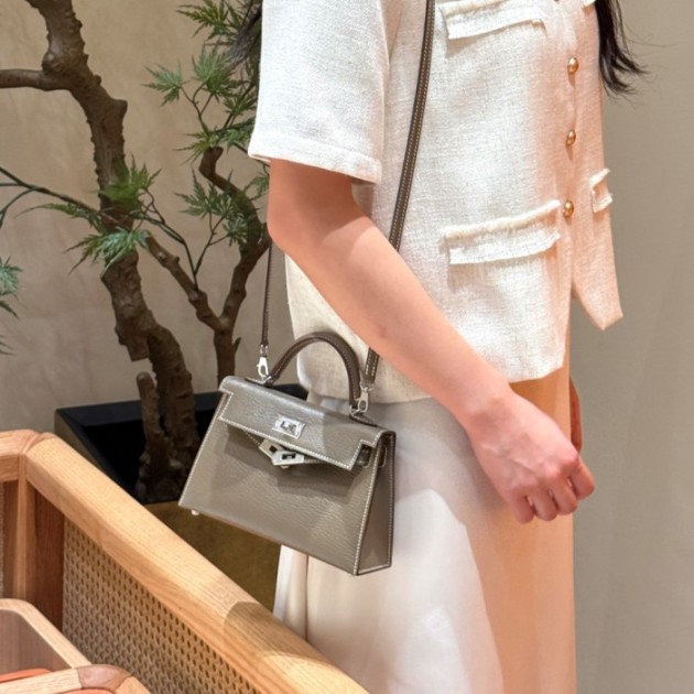올수공 에르메스 미니 켈리 18/Etoupe 체브레 가죽 실버 하드웨어