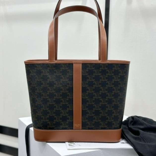 셀린느 트리오페 캔버스 카프스킨 카바스백 스몰 탄 115082