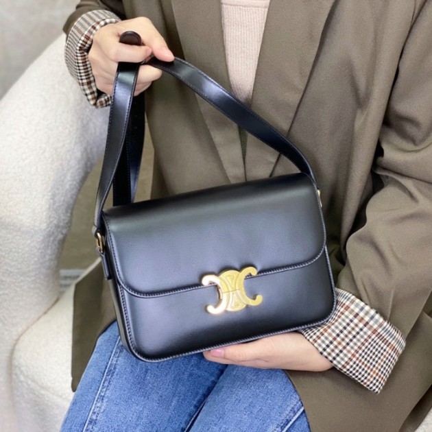 셀린느 트리옹프 클래식 샤이니 숄더백 미디엄 블랙 187363