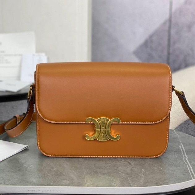 셀린느 트리옹프 클래식 샤이니 숄더백 미디엄 카멜 187363