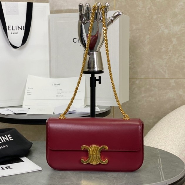 셀린느 트리오페 캔버스 체인 숄더백 버건디 197993