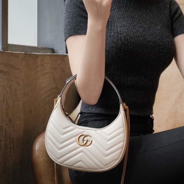 구찌 GG 마몽 하프문 쉐입 미니백 화이트 699514