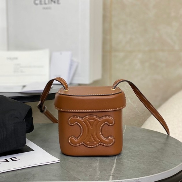 셀린느 트리오페 퀴르 스몰 박스 숄더백 탄 199263