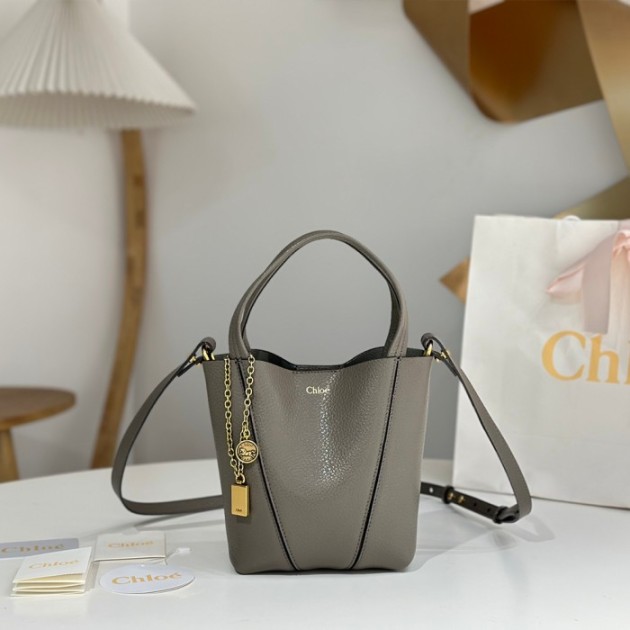 • 끌로에 그레인드 레더 스핀 스몰 토트백 클레이 그레이