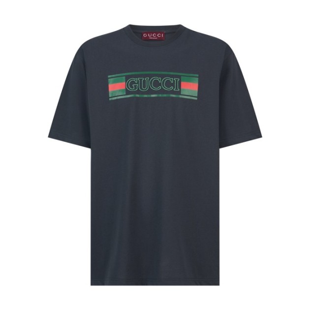 구찌 프린트 코튼 저지 티셔츠 네이비