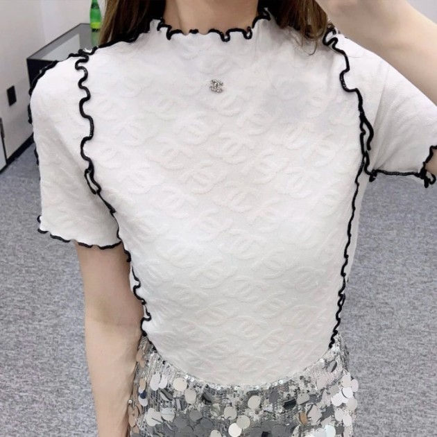 샤넬 25SS 자카드 로고 니트 반팔 화이트